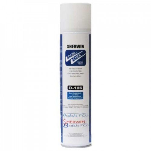 Проявитель Sherwin D-106, произведенный на органической основе, используется для усиления контраста и обнаружения следов от красных или люминесцентных пенетрантов при низких температурах в интервале -30°С - +10°С. Применяется для капиллярного неразрушающего контроля.