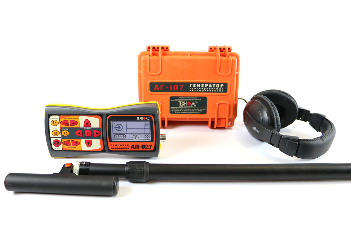 Комплект оснащен новейшим компактным автономным генератором АГ-107 со встроенными элементами питания, дисплеем и встроенной индукционной антенной, для трассировки коммуникации бесконтактным способом. Выходная мощность генератора до 60 Вт.