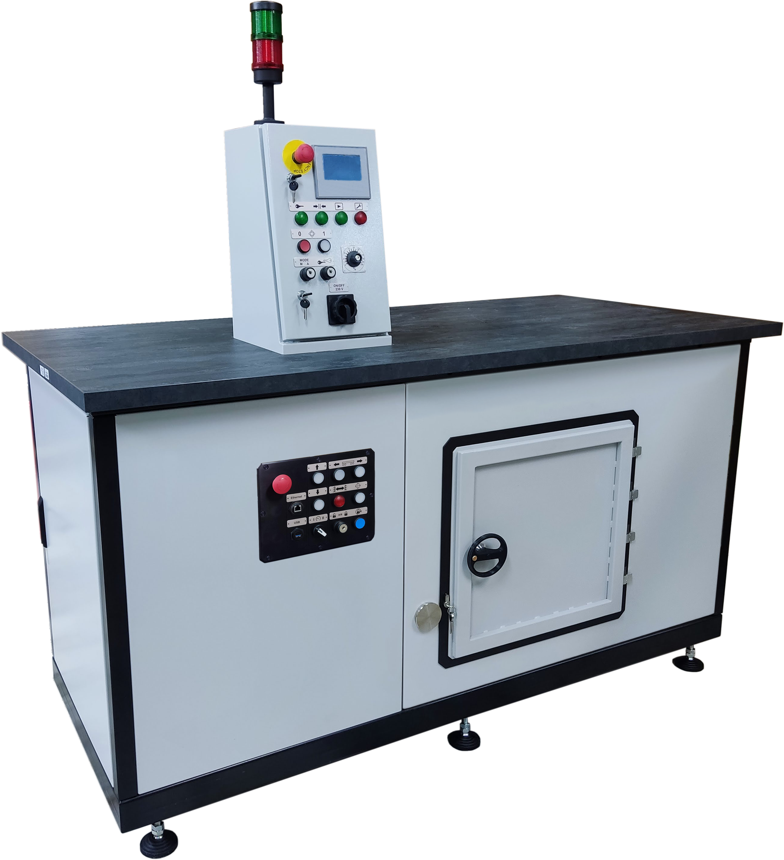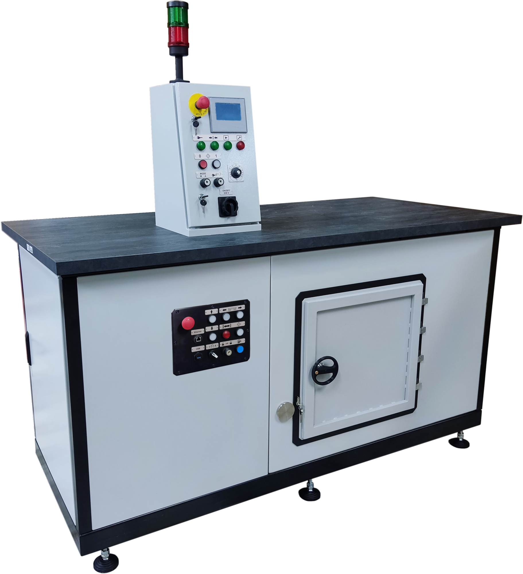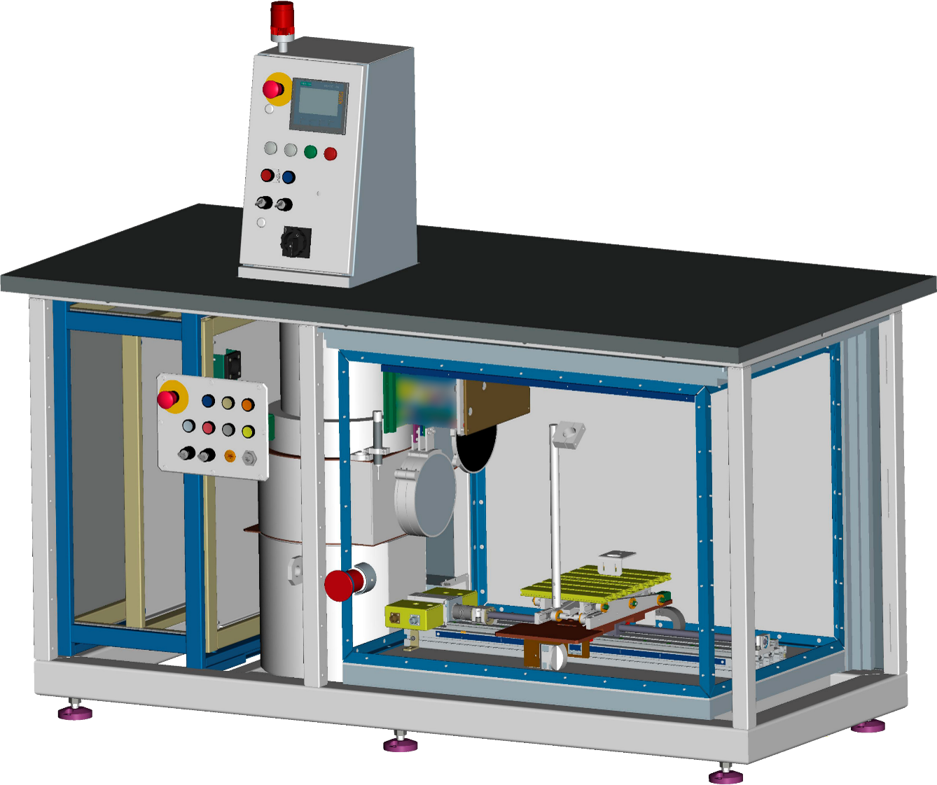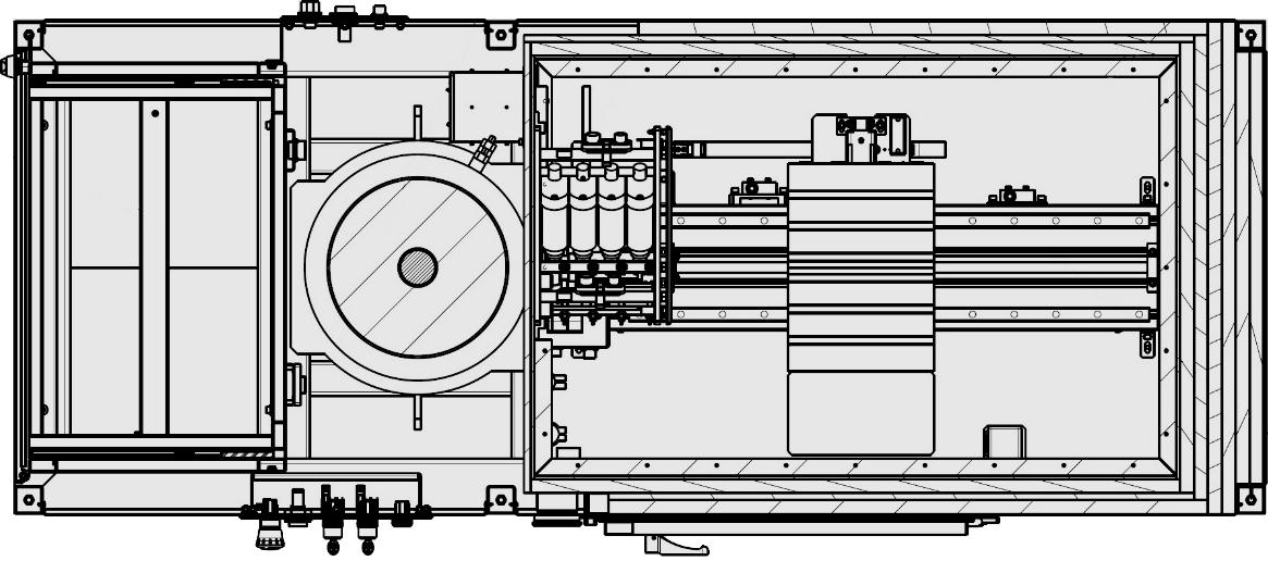 • Загрузка приборов на рабочий стол осуществляется через дверь. С центрального и наладочного пультов можно осуществлять управление всеми механизмами установки в наладочном и полуавтоматическом режимах.