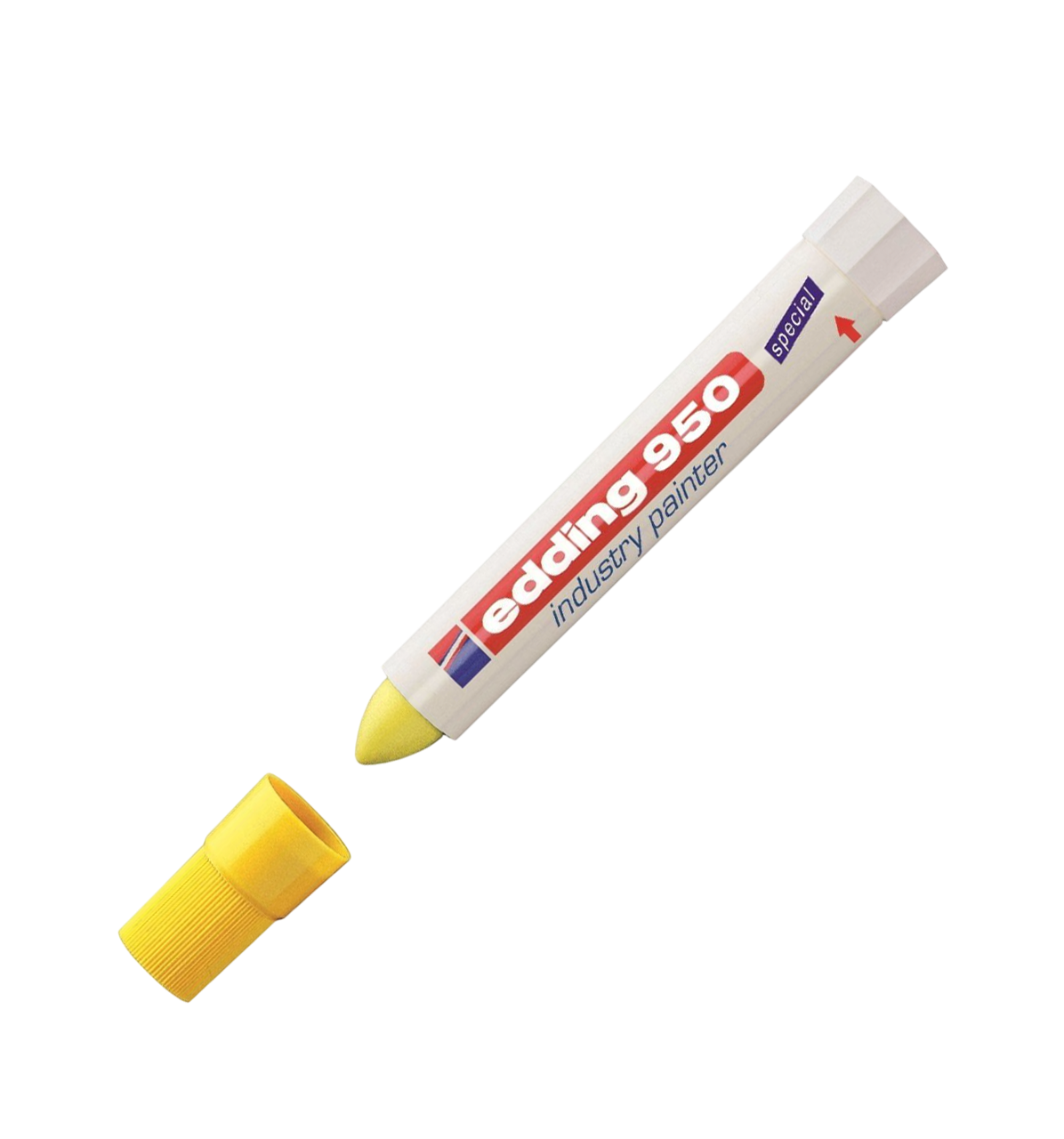 В маркере Edding E 950 в качестве маркирующего вещества используется высокостойкая пигментная, плотно ложащаяся мастика. Мастика застывает через несколько секунд после ее нанесения на маркируемую поверхность. У фирмы Edding есть положительный опыт использования индустриального маркера Edding E 950 при проведении подводных работ. Благодаря водостойким свойствам мастики, данным маркером можно делать широкие, хорошо заметные надписи под водой и на предметах, длительное время находящихся в воде. Температурный режим нанесенной и высохшей краски маркера — до 300 °C. Температура поверхности при нанесении — не более 100 °C.