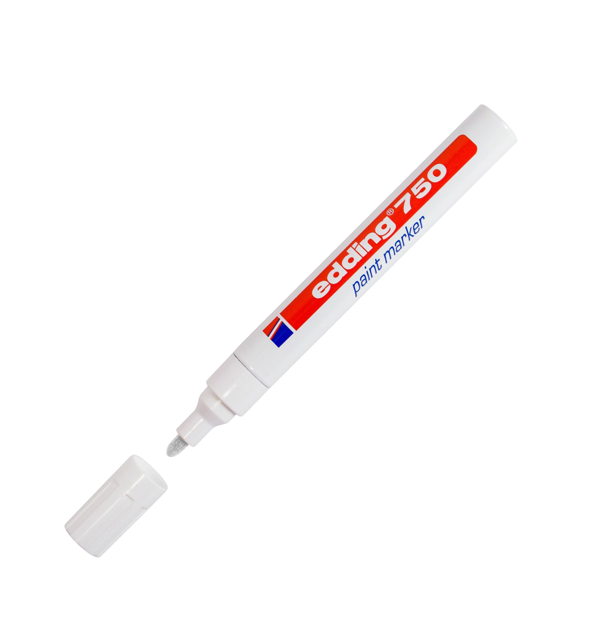 Универсальный маркер Edding 750, используется для промышленной непрозрачной маркировки практически всех материалов, например, стекла, пластика, дерева или металла. Может применяется для письма на жирных, пыльных, грязных поверхностях. Лаковый маркер устойчив к кислотам, растворителям, механическому истиранию, свету. Высококонцентрированный пигмент хорошо ложится на гладкие и шероховатые поверхности. Специальные добавки, введенные в состав маркера Edding E 750 растворяют, масляную пленку на поверхности письма. Непрозрачные лаковые чернила позволяют делать хорошо заметные надписи густым плотным слоем даже на темных поверхностях. Корпус промышленного маркера изготовлен из алюминия. Маркер Edding E 750 имеет упроченный круглый (пулевидный) наконечник. Наконечник маркера может быть заменен по мере истирания. Благодаря тонкому наконечнику, маркером может наноситься маркировка на небольшие элементы и поверхности. Толщина линии — 2-4 мм. Поток чернил регулируется клапаном. Чернила маркера с лакирующим эффектом на основе нитрокраски. Водостойкий, быстро сохнет. Термостойкость надписи до 1000 градусов по Цельсию. Надписи цветами 06-010, 049, 054 также видимы до 1000 С. Термостойкость остальных цветов — до 400 градусов по Цельсию. Маркер Edding E 750 хорошо зарекомендовал себя в работе при перепадах температур от −15 до 30. Промышленный лаковый маркер Edding Е-750 универсален. Используется, например, при нанесении меток на разнородные материалы. При маркировке изделий из резины, пластика, стекла, металла, кабеля, проводов, при нанесении маркировки на товары достаточно одного маркера — Edding E 750. Идеально подходит для маркировки грузов, приборостроения, технологической маркировки. Кроме того, маркер Edding E 750, благодаря разнообразной палитре цветов и свойствам красящего вещества, широко используется для декоративных и оформительских работ дизайнерами. используется в витражных работах, росписи по дереву и керамике, для других интерьерных работ. Инструкция по применению маркера: 1. Перед использованием хорошенько встряхнуть с закрытым колпачком. 2. Снимите колпачок, прижмите наконечник к поверхности, надавите и удерживайте пока не проступит краска. 3. Применять после того как убедитесь, что вытекает исходный цвет. Предостережение: плотно закрывайте колпачок после применения, держать маркер вдали от огня и прямых солнечных лучей.