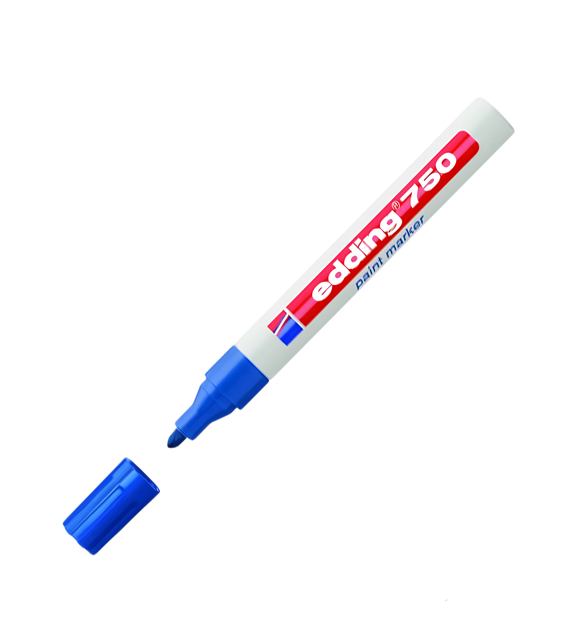 Универсальный маркер Edding 750, используется для промышленной непрозрачной маркировки практически всех материалов, например, стекла, пластика, дерева или металла. Может применяется для письма на жирных, пыльных, грязных поверхностях. Лаковый маркер устойчив к кислотам, растворителям, механическому истиранию, свету. Высококонцентрированный пигмент хорошо ложится на гладкие и шероховатые поверхности. Специальные добавки, введенные в состав маркера Edding E 750 растворяют, масляную пленку на поверхности письма. Непрозрачные лаковые чернила позволяют делать хорошо заметные надписи густым плотным слоем даже на темных поверхностях. Корпус промышленного маркера изготовлен из алюминия. Маркер Edding E 750 имеет упроченный круглый (пулевидный) наконечник. Наконечник маркера может быть заменен по мере истирания. Благодаря тонкому наконечнику, маркером может наноситься маркировка на небольшие элементы и поверхности. Толщина линии — 2-4 мм. Поток чернил регулируется клапаном. Чернила маркера с лакирующим эффектом на основе нитрокраски. Водостойкий, быстро сохнет. Термостойкость надписи до 1000 градусов по Цельсию. Надписи цветами 06-010, 049, 054 также видимы до 1000 С. Термостойкость остальных цветов — до 400 градусов по Цельсию. Маркер Edding E 750 хорошо зарекомендовал себя в работе при перепадах температур от −15 до 30. Промышленный лаковый маркер Edding Е-750 универсален. Используется, например, при нанесении меток на разнородные материалы. При маркировке изделий из резины, пластика, стекла, металла, кабеля, проводов, при нанесении маркировки на товары достаточно одного маркера — Edding E 750. Идеально подходит для маркировки грузов, приборостроения, технологической маркировки. Кроме того, маркер Edding E 750, благодаря разнообразной палитре цветов и свойствам красящего вещества, широко используется для декоративных и оформительских работ дизайнерами. используется в витражных работах, росписи по дереву и керамике, для других интерьерных работ. Инструкция по применению маркера: 1. Перед использованием хорошенько встряхнуть с закрытым колпачком. 2. Снимите колпачок, прижмите наконечник к поверхности, надавите и удерживайте пока не проступит краска. 3. Применять после того как убедитесь, что вытекает исходный цвет. Предостережение: плотно закрывайте колпачок после применения, держать маркер вдали от огня и прямых солнечных лучей.