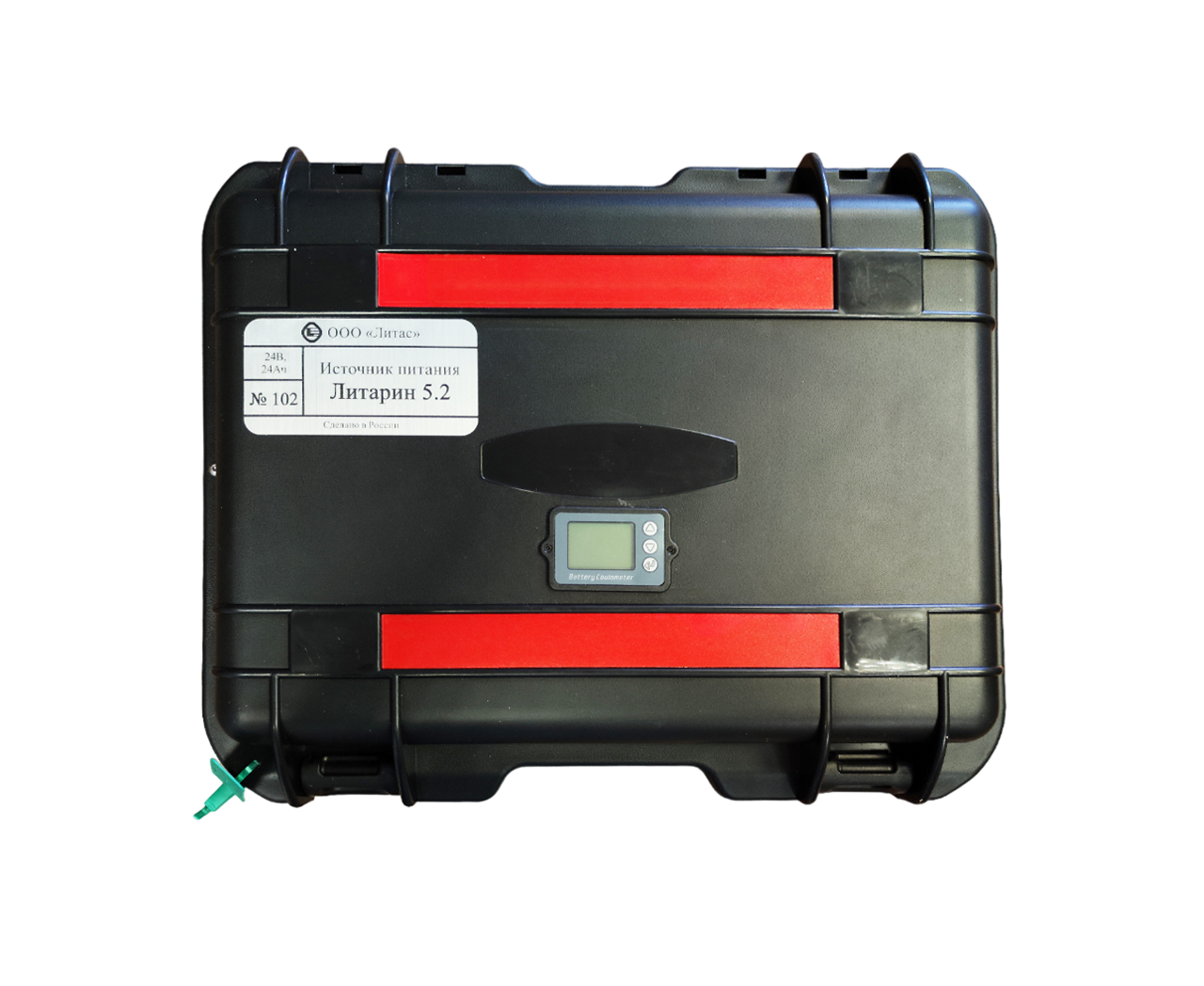 Источник питания с ЗУ для импульсного р/а (24 В, 25 Ач) "Литарин-5-2" в кейсе IP65 (фирменные аккумуляторы), LiFePO4, быстрый заряд, легкие, морозостойкие, ресурс в 10 раз выше, чем у свинцовых