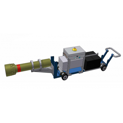 Тележка имеет тормозную систему, позволяющую быстро остановить оборудование у шва. Комплект легкосменных осей колес позволяет работать в трубах различного диаметра.