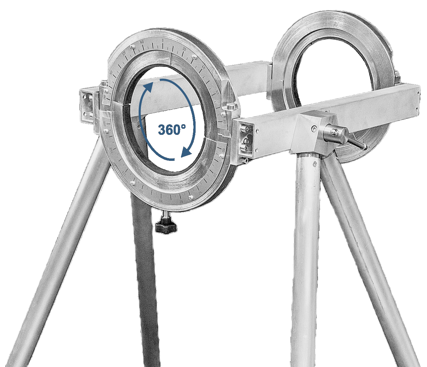 Штативы четырехножные серии «XRS-4» изготавливаются по ТУ 4276-030-96651179-2015 и предназначены для позиционирования относительно объекта контроля моноблочных рентгеновских аппаратов типа Радон, РПД, Eresco, Baltospot, Site-X, SMART и других. В зависимости от модели аппарата используются разные диаметры обжимных полуколец. Телескопические алюминиевые ноги штатива позволяют осуществлять регулировку положения рентгеновского аппарата по высоте. Регулировка положения аппарата в вертикальной плоскости и вокруг своей оси возможна в диапазоне 0 ÷ 360 градусов. Для отсчета угла поворота рентгеновского аппарата вокруг своей оси предусмотрена круговая шкала.