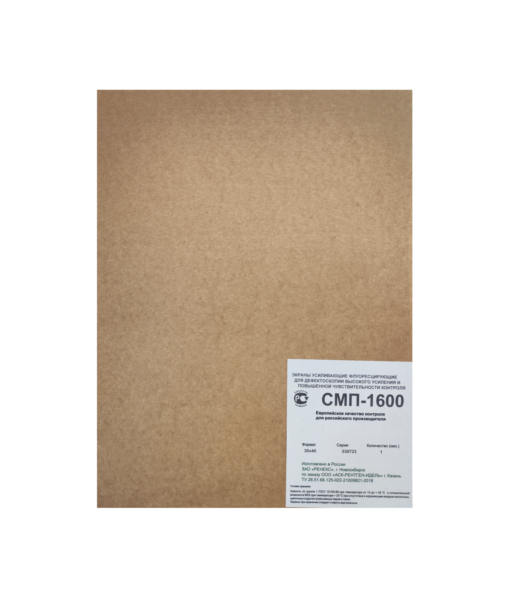 Экраны усиливающие флуоресцирующие для дефектоскопии высокого усиления и повышенной чувствительности контроля «СМП-1600» предназначены для максимального сокращения времени экспозиции при обеспечении высокой детальной чувствительности (класс 1 по ГОСТ 7512-82) при проведении промышленной рентгеновской дефектоскопии с использованием технической радиографической пленки.