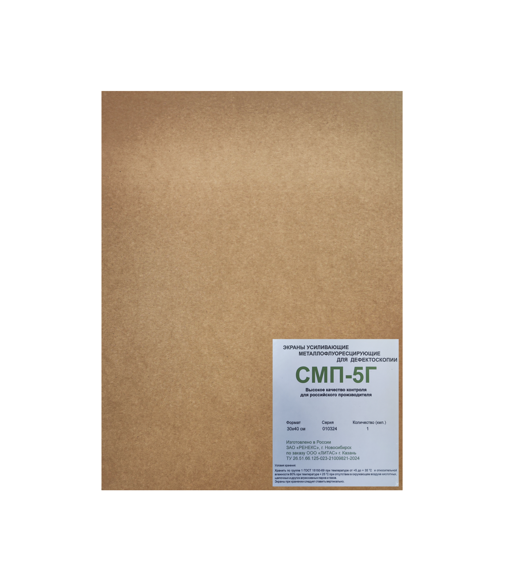 Экраны СМП-5Г предназначены для использования в промышленной дефектоскопии. Они совместимы с пленками для радиографического исследования, сенсибилизированными в зеленой области спектра. Они обладают большей чувствительностью, по сравнению с синечувствительными, а использование с экраном позволяет уменьшить время экспозиции и при этом обеспечить хорошее качество и детальность снимка. Наибольшей четкости изображения можно достичь при использовании экрана с пленками типов UJI IX600, ФОМАКС Ф8 IX600.