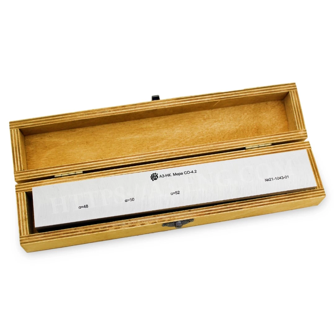 Мера СО-4.2 представляет собой изделие в виде параллелепипеда с нанесенным на нем дефектами в виде сегментных отражателей. Произведены в соответствии с 427610-011-4407661-2019.ТУ.